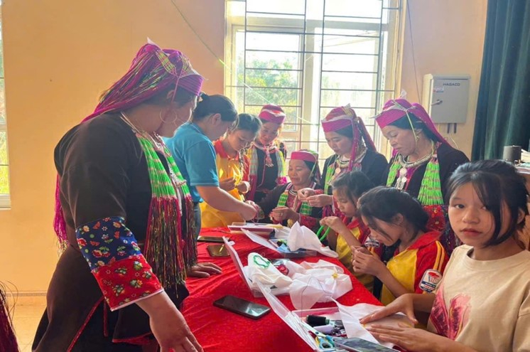 CLB may thêu trang phục truyền thống tại xã Tiên Yên. Ảnh: Cơ sơ cung cấp